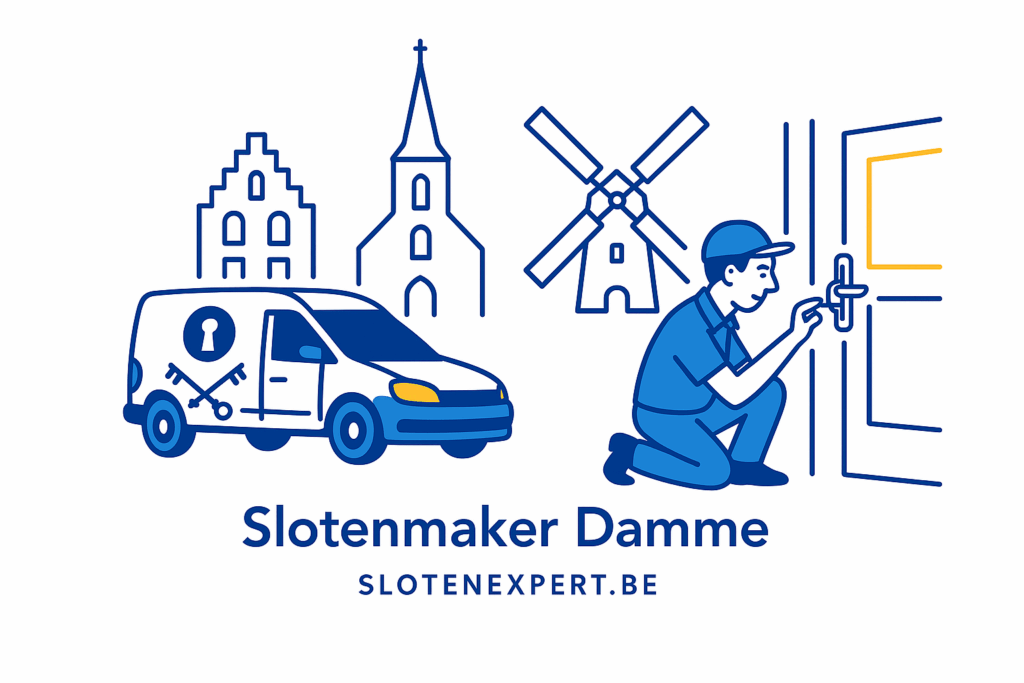Onze slotenmakers zijn mobiel en vaak binnen 30 minuten bij u, of u nu woont in Damme-centrum, Moerkerke of bij de Scheepsdalebrug.